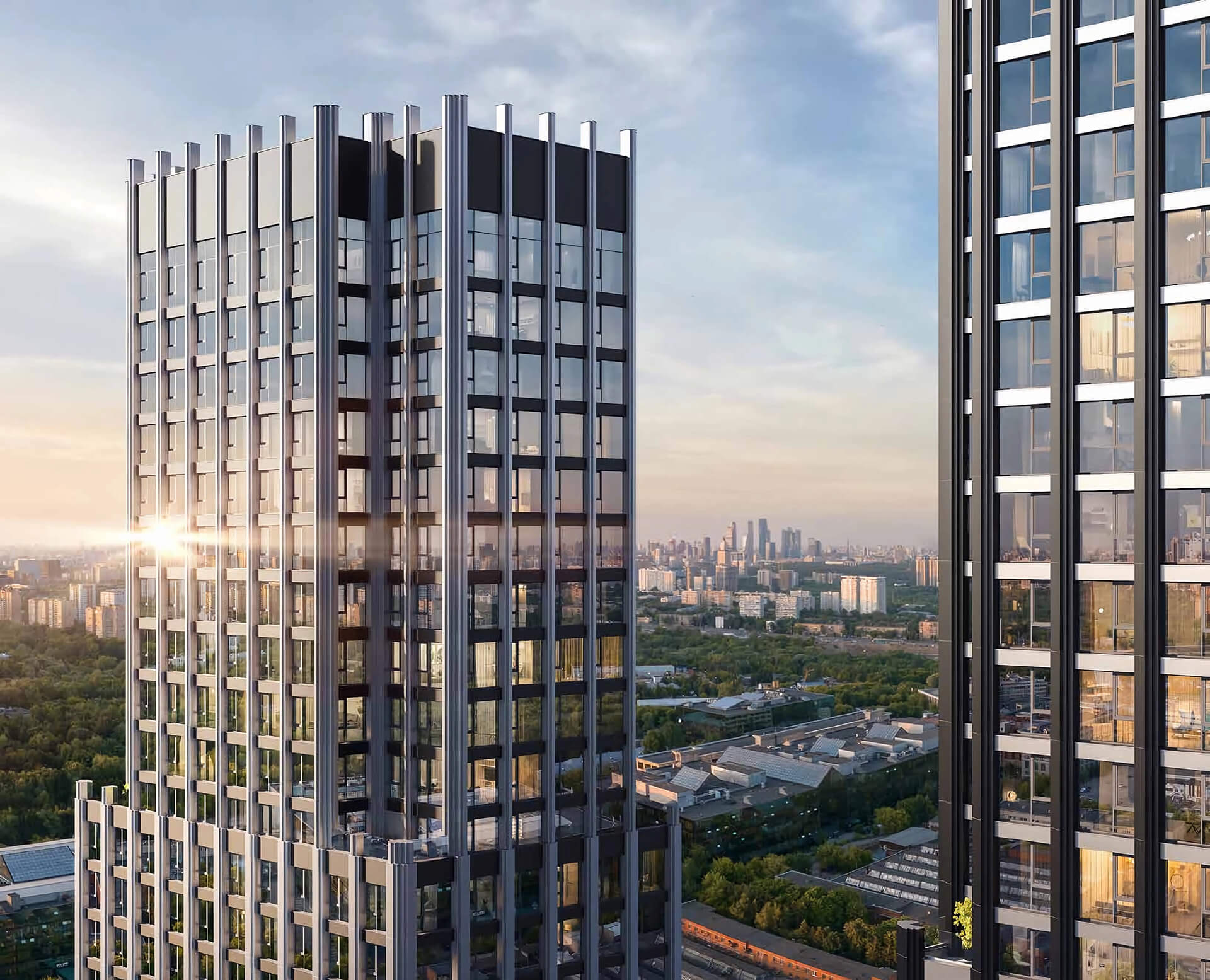 Архитектура жилого комплекса SET — это воплощение современности и прогресса, формирующее уникальный облик района. Башни комплекса, стремящиеся ввысь, поражают своей ломаной геометрией, отсылая к авангардной эстетике начала XX века. Эта форма символизирует стремление к новым вершинам и достижениям, что отражает ценности будущих жителей. Каждый из корпусов выполнен в индивидуальной стилистической концепции, что подчеркивает разнообразие и динамичность архитектурного решения.
